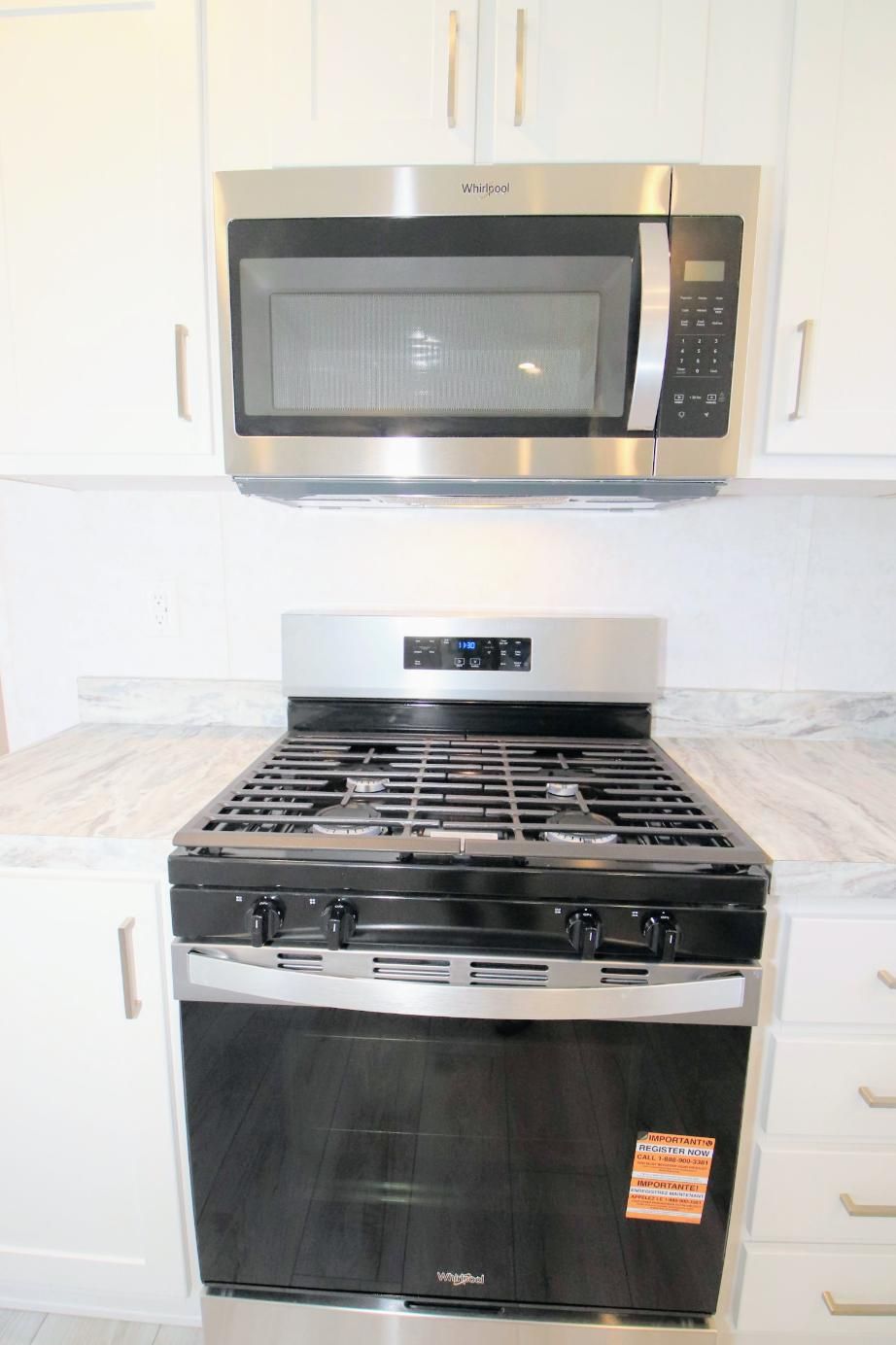 - Whirlpool Stainless Steel Appliances: 30” Gas Range, Dishwasher, 18' cu ft Refrigerator & Microwave over Range,