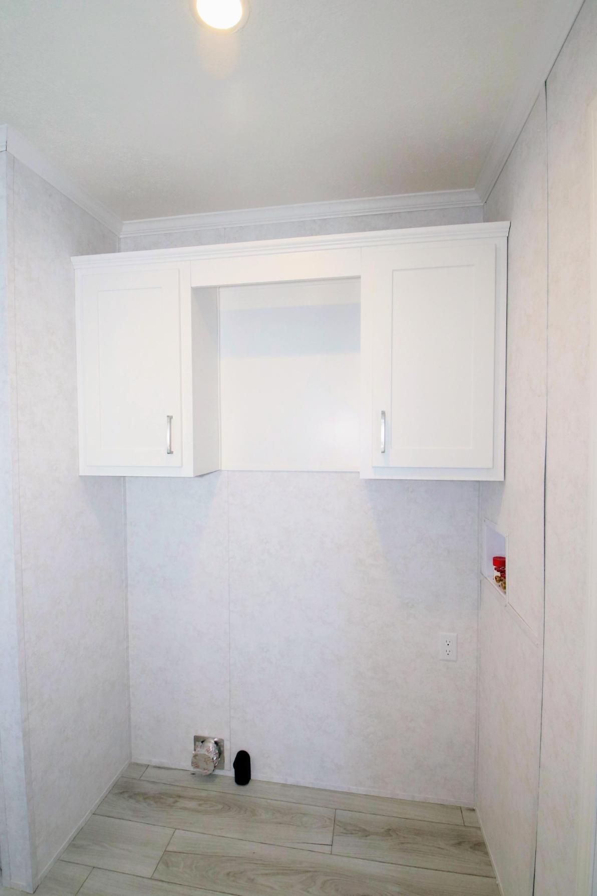 - White Cabinets over Laundry Area