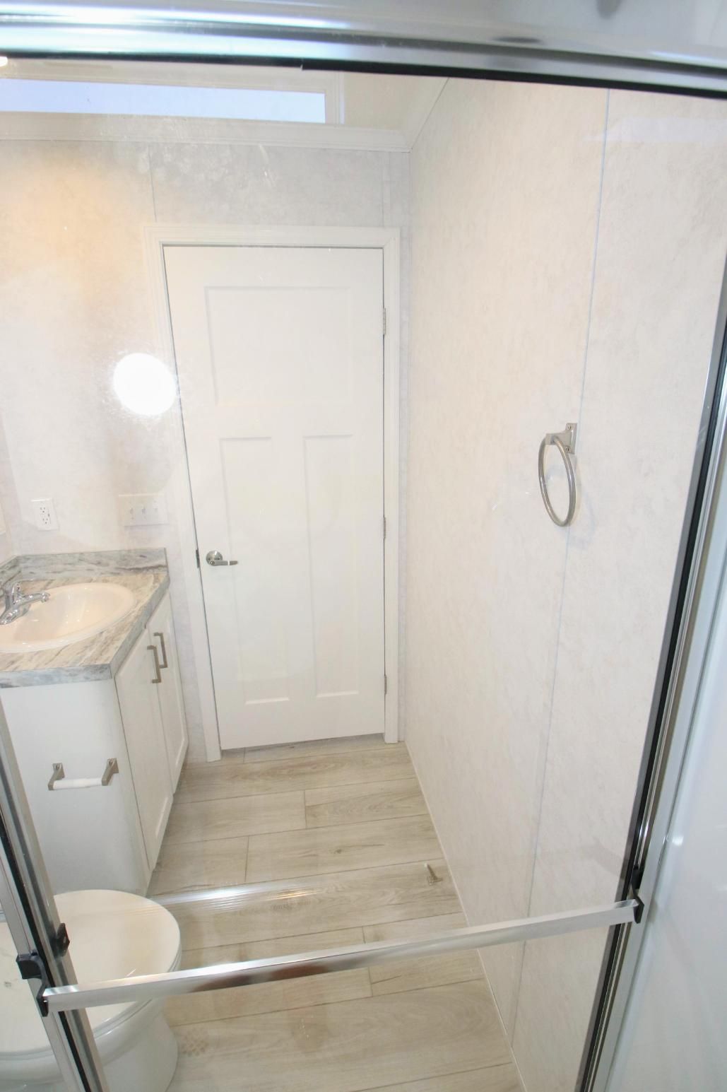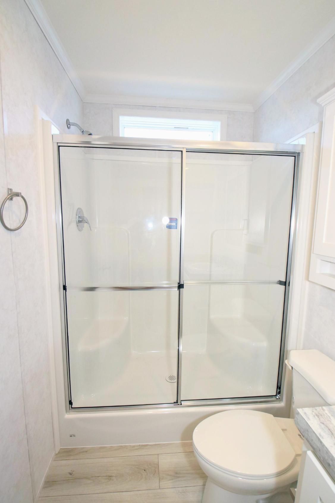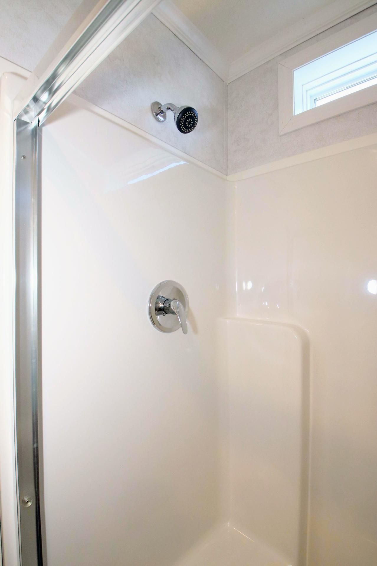 - One Piece 2 seat Fiberglass Shower Stall with Glass Sliding Door