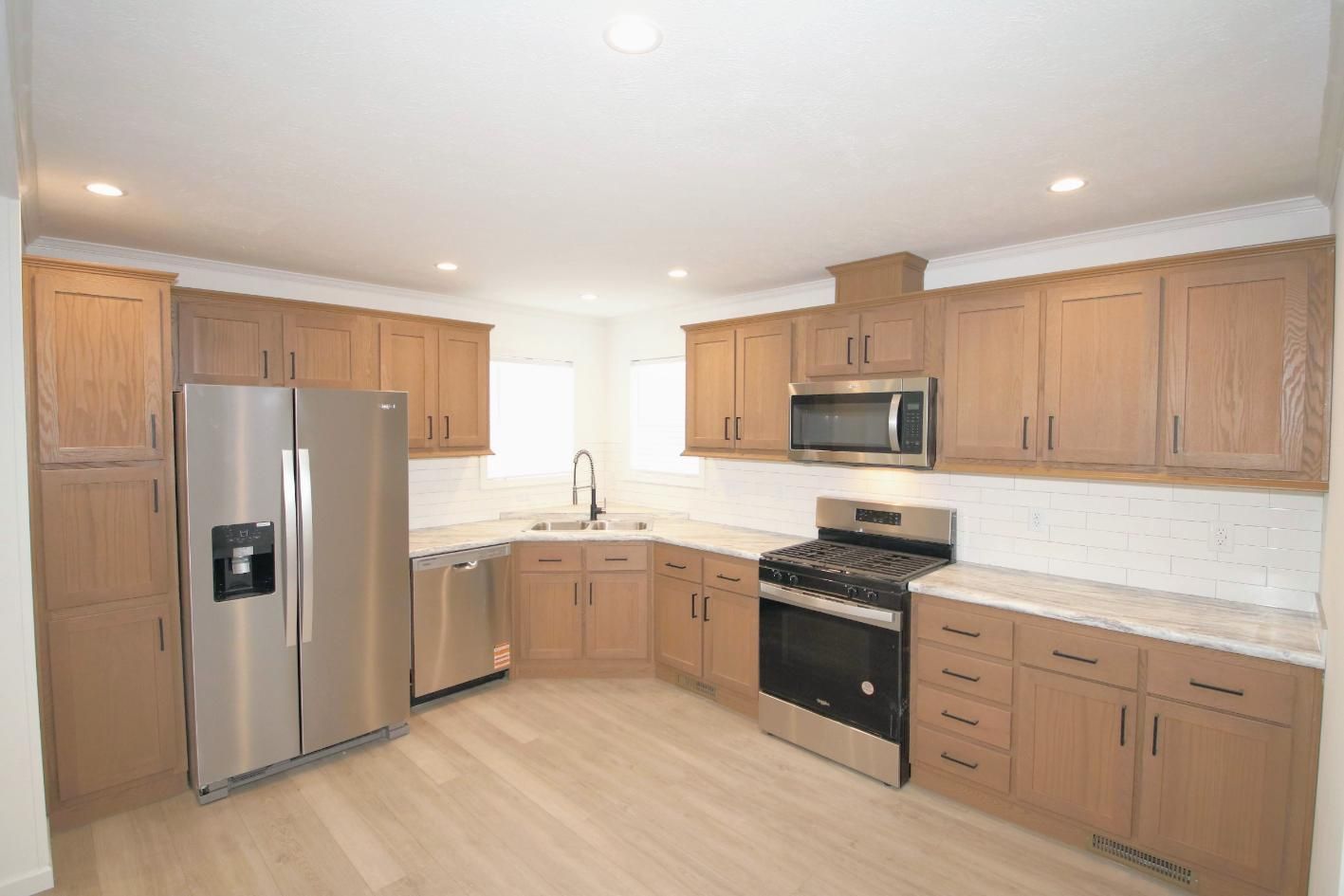 - Whirlpool Stainless Steel Appliances: Gas Range, Dishwasher, 22' cu ft Refrigerator & Microwave over Range,