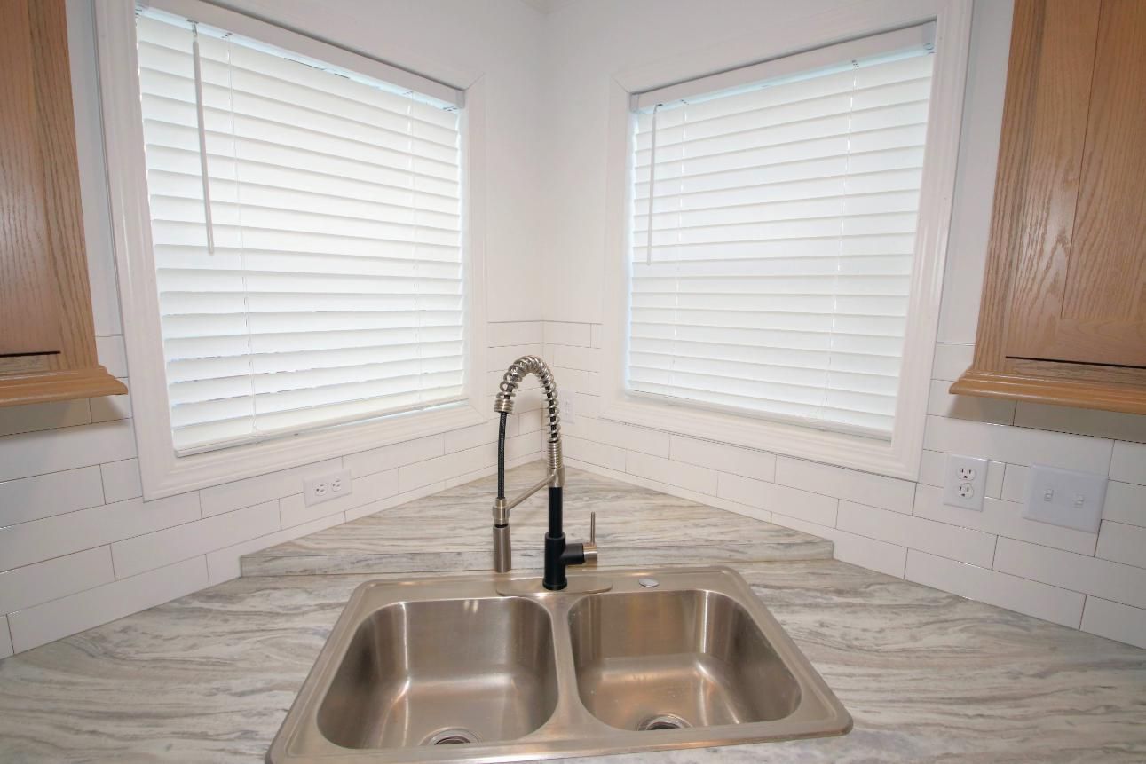 - Backsplash: Glossy White Glass tile